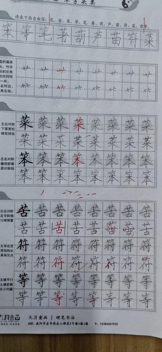 1. 硬笔书法(7岁+),分为脱格、作品、基础三种内容(根据情况选择),10节课,开课日期:1月27日至2月7日(上满10节课)